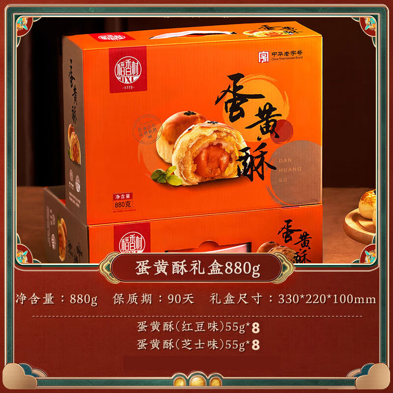 稻香村蛋黄酥礼盒装880g红豆芝士传统糕点点心送礼好吃的整箱零食 2种口味共16枚蛋黄酥880g
