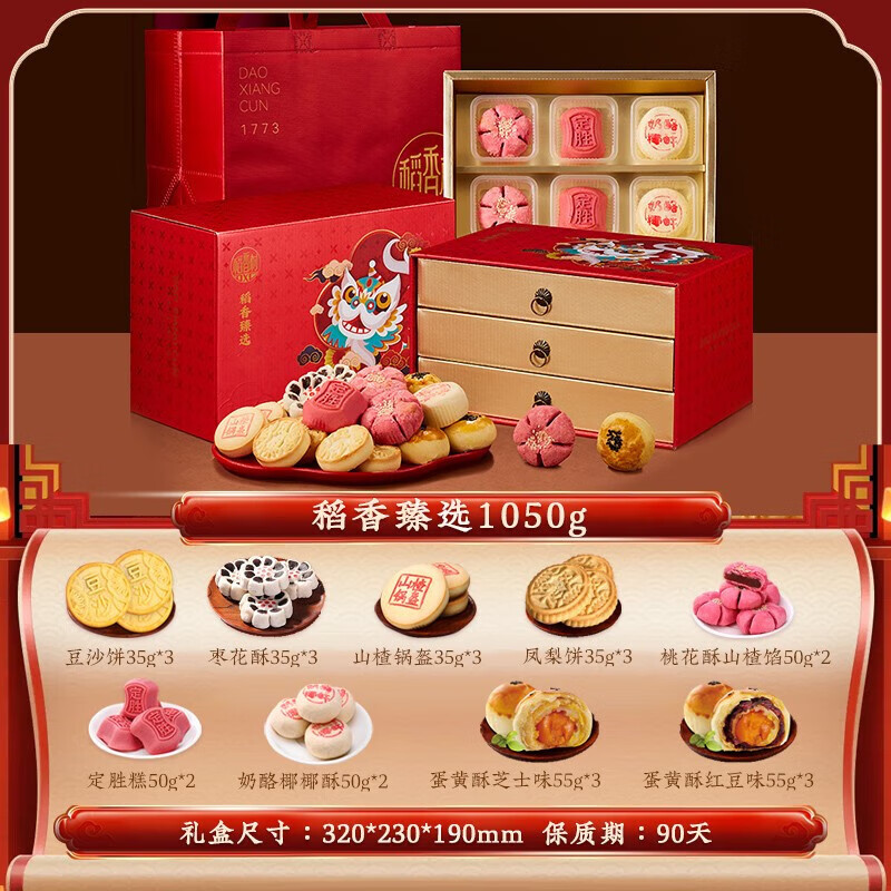稻香村糕点礼盒蛋黄酥枣花酥凤梨饼1050g零食小吃早餐春节礼品年货团购