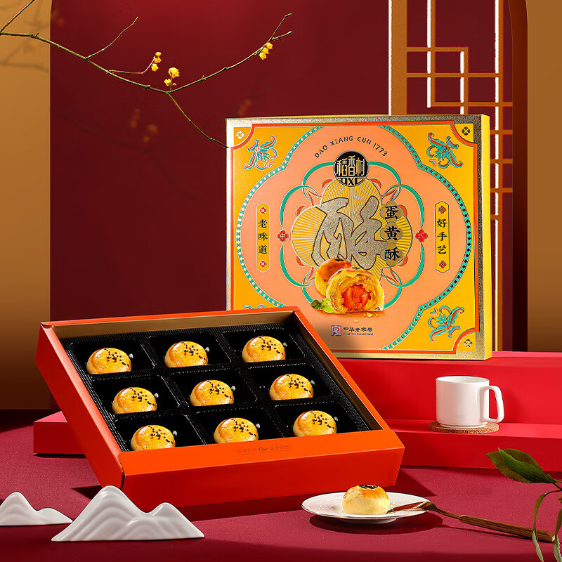 北京稻香村蛋黄酥糕点礼盒495g中秋节礼盒送礼好味道红豆沙肉松馅糕点礼盒 495g 9块装 蛋黄酥(糕点)*1盒