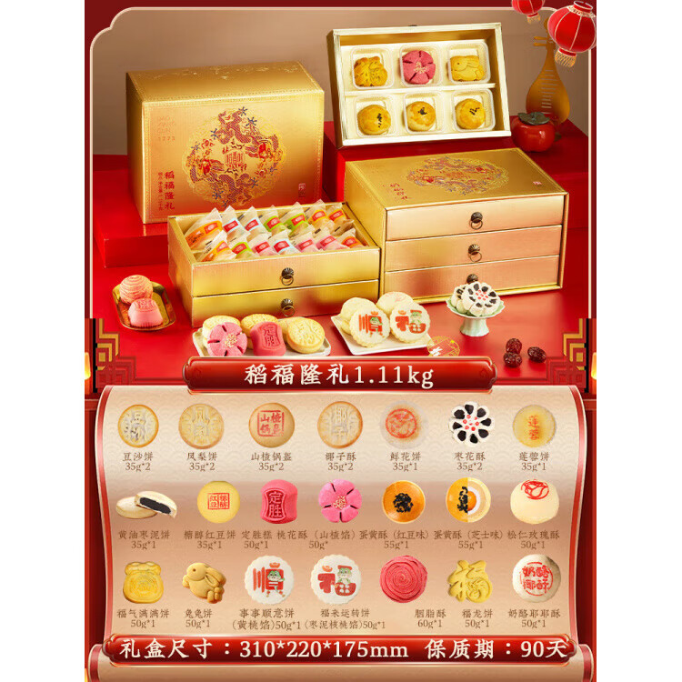 北京稻香村糕点礼盒莲蓉饼蛋黄酥中式传统点心零食高端三层茶点送长辈 稻福隆礼【26饼21味】1110g