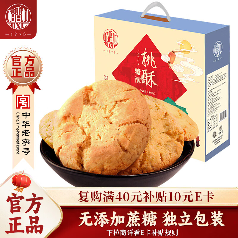 稻香村 糖醇桃酥800g整箱礼盒 无蔗糖糕点饼干中老年食品零食团购送礼品