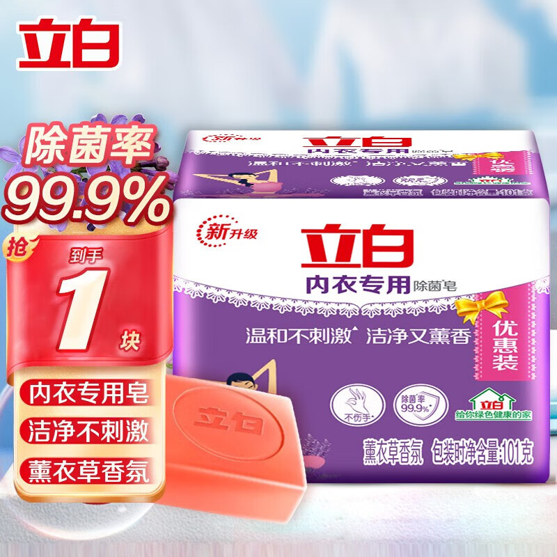 立白内衣皂女士内衣内裤专用除菌洗衣皂超值装清洁皂男女通用抑菌肥皂 薰衣草香101g(尝鲜装)