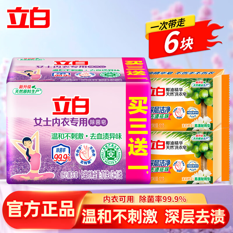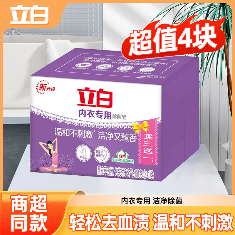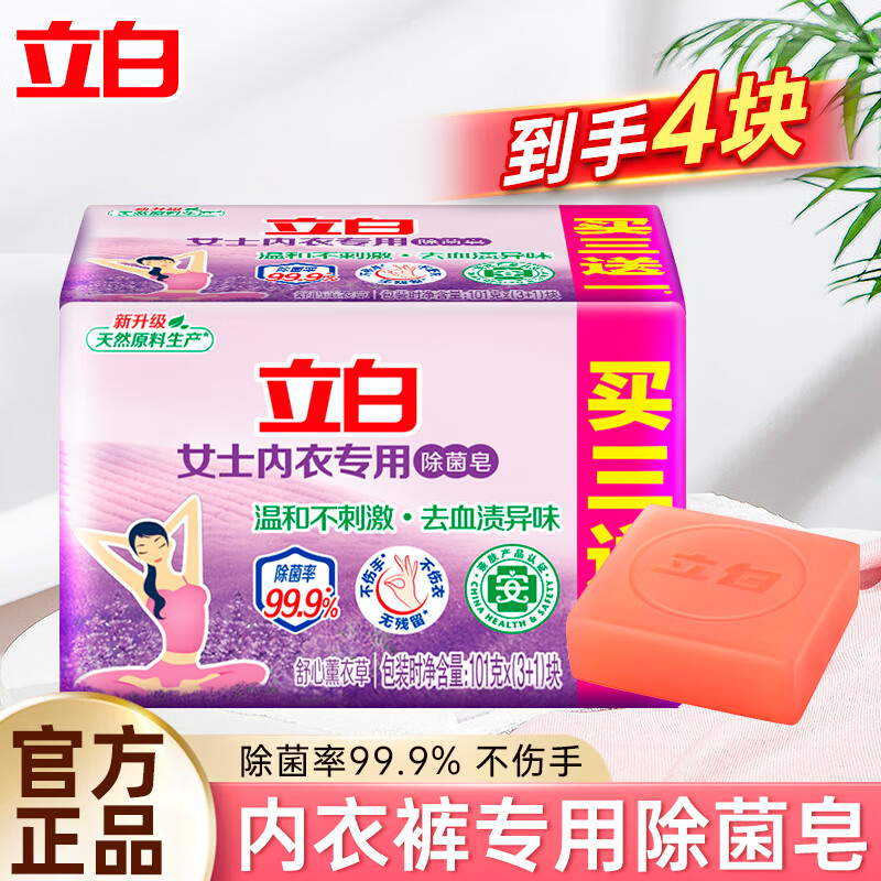 立白内衣皂除菌率99%女士内衣专用洗衣皂洗内裤专用皂高效去血渍肥皂 【404g】除菌内衣皂101g*4块