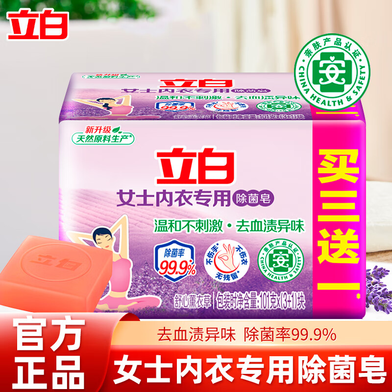立白内衣皂除菌率99%女士内衣专用洗衣皂洗内裤专用皂高效去血渍肥皂 【去血渍】除菌内衣皂101g*3块
