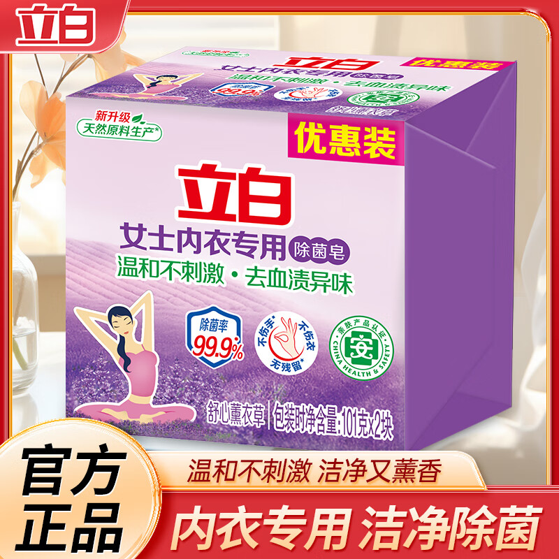 立白内衣专用除菌皂耐用温和不伤手贴身衣物适用薰衣草香肥皂 内衣专用除菌皂101g*2块