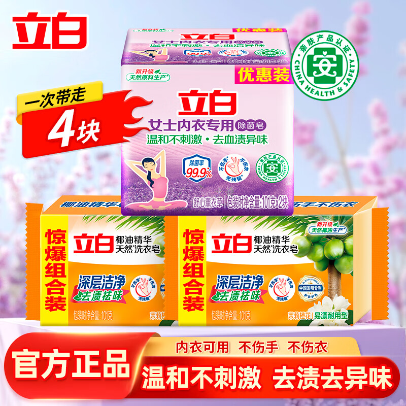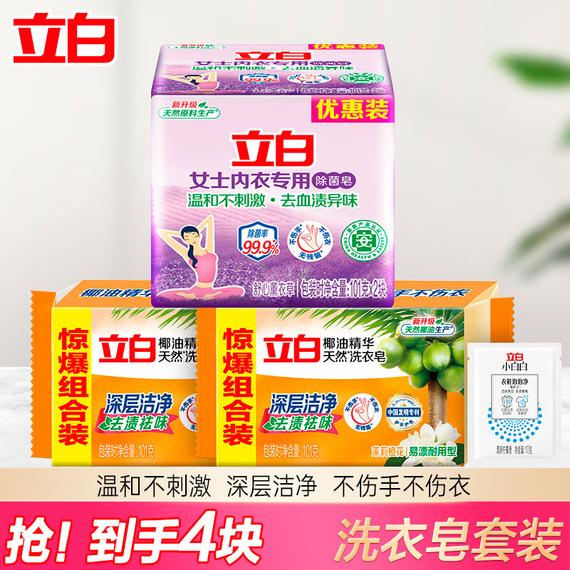 立白内衣洗衣皂99.9%除菌率手洗肥皂内衣专用皂内裤用温和不伤手 【加量组合装】一次性到手4块