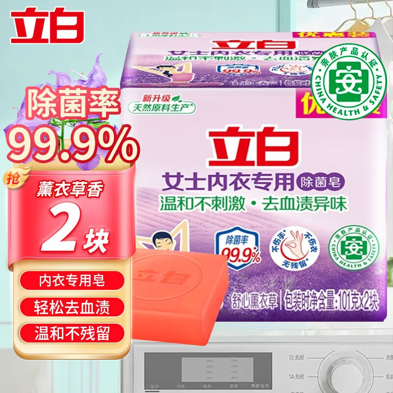 立白内衣皂除菌率99%女士内衣专用洗衣皂洗内裤专用皂高效去血渍肥皂 除菌内衣皂2块(101g*2块)