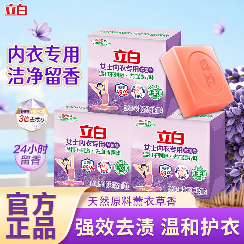 立白内衣内裤专用皂杀菌女士男女通用抑菌洗衣皂肥皂薰衣草皂套装 性价比3粒装