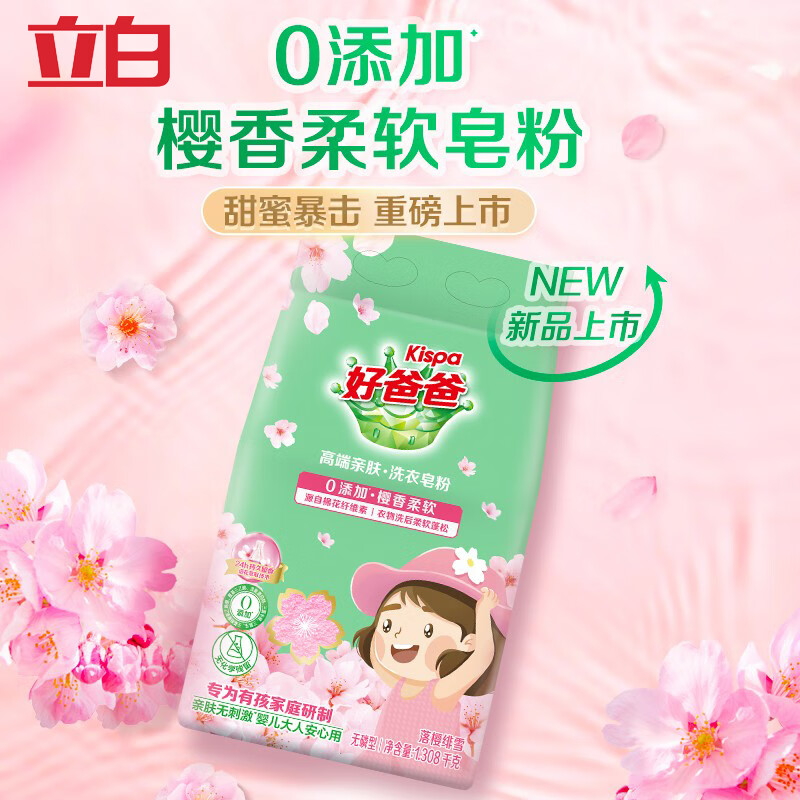 立白天然洗衣香皂粉椰油精华洗衣粉不伤手花香柔顺留香活性成分去污 立白好爸爸樱香皂粉1308g
