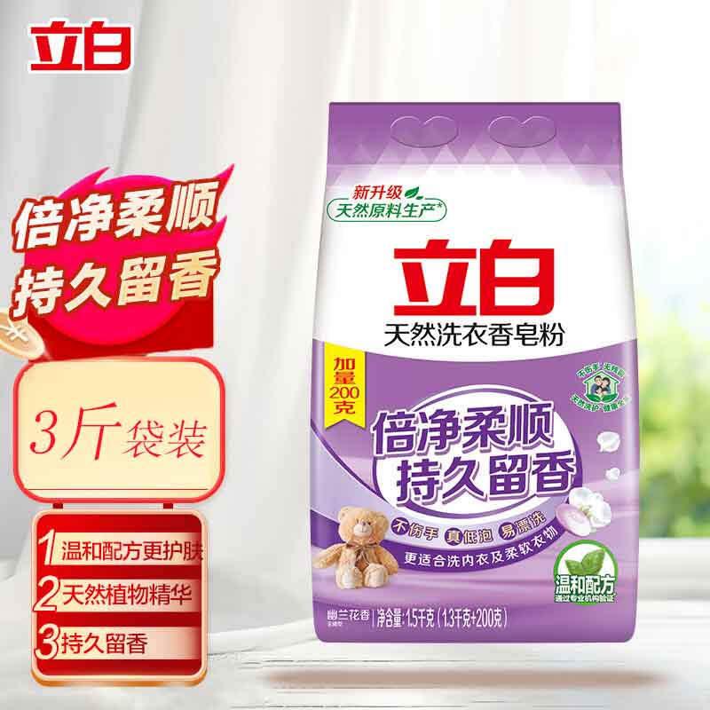 立白天然洗衣香皂粉家用无污渍实惠装香水皂粉香味持久留香1.5kg 立白天然洗衣香皂粉1.5kg*1袋