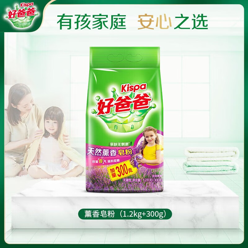 立白天然皂粉香皂粉洗衣粉高效去渍含天然椰油精华洗衣粉洗护合一 立白好爸爸天然熏香皂粉1.5kg