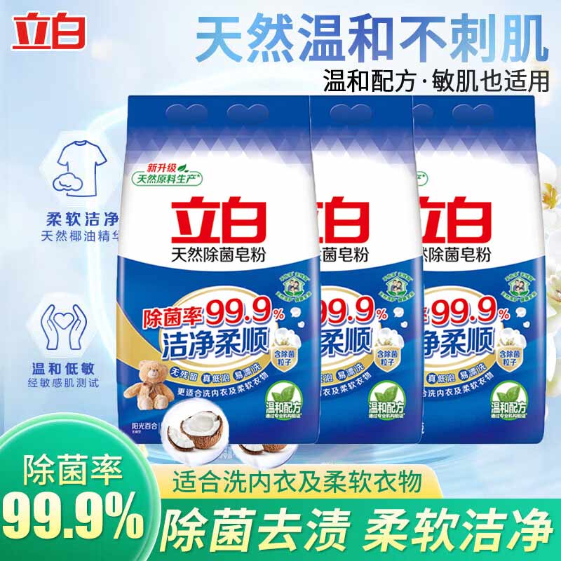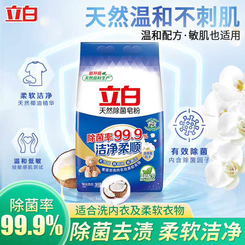 立白天然皂粉香皂粉洗衣粉高效去渍含天然椰油精华洗衣粉洗护合一 立白除菌皂粉2.4kg【4.8斤】