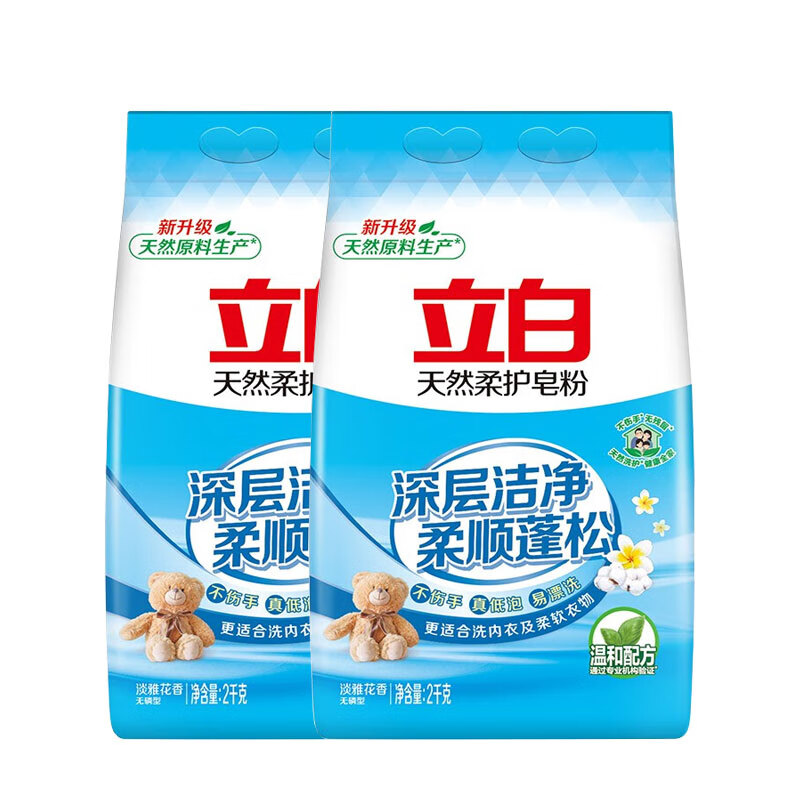 立白天然柔护皂粉儿童洗衣粉深层洁净香皂粉宝宝贴身衣服清洗 【天然皂粉8斤】2000克*2袋