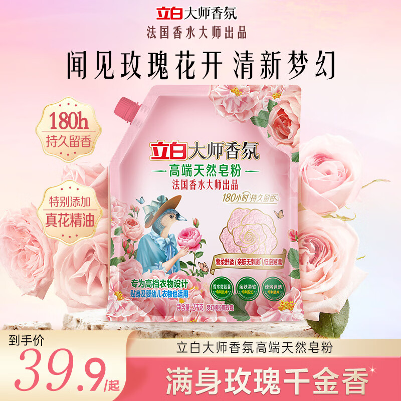 立白天然皂粉香皂粉洗衣粉高效去渍含天然椰油精华洗衣粉洗护合一 大师香氛高端香皂粉2kg