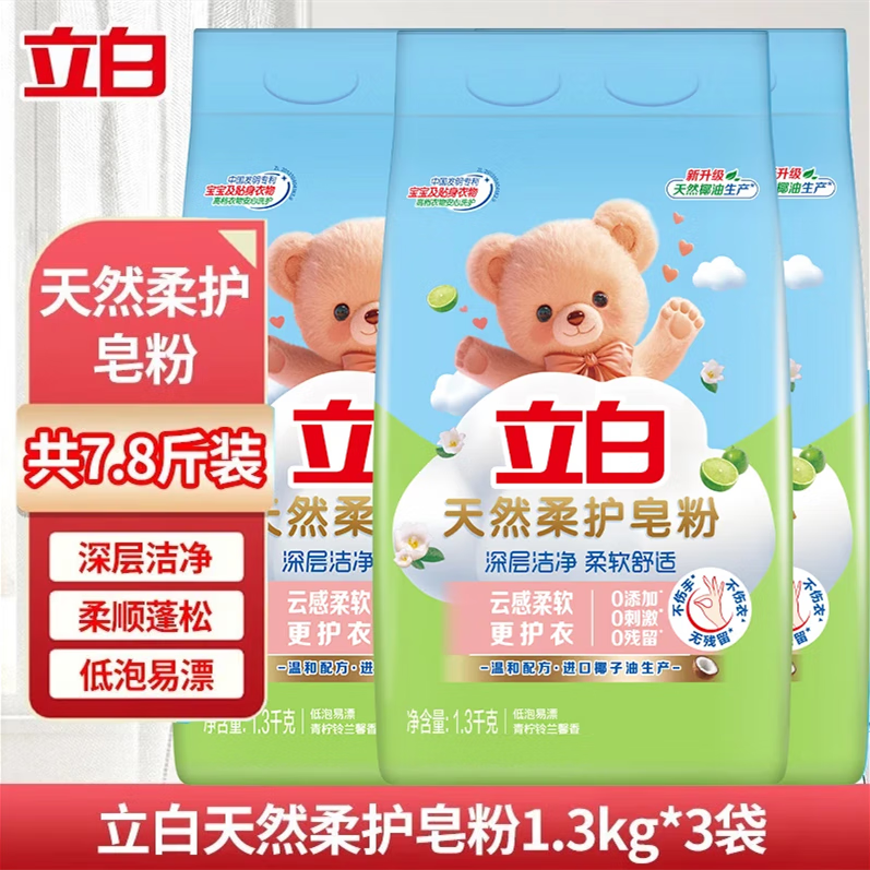 立白天然柔护皂粉洗衣香皂粉洗衣粉深层洁净柔顺低泡易漂持久留香 柔护皂粉【共7.8斤】 1.3kg*3袋