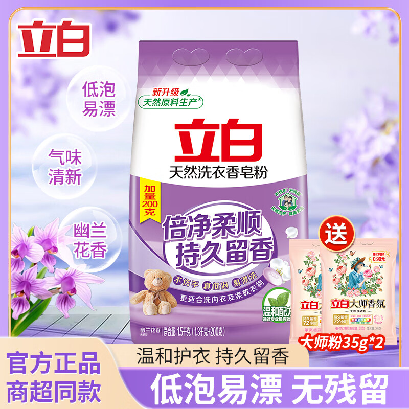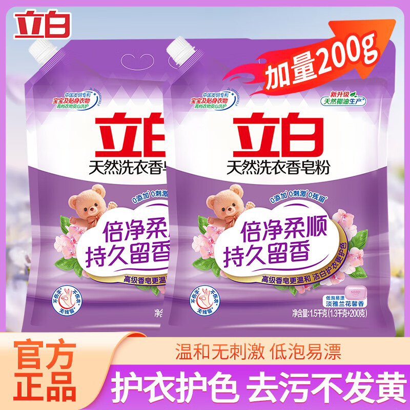 立白天然洗衣香皂粉家用无污渍实惠装香水皂粉香味持久留香1.5kg 立白天然洗衣香皂粉1.5kg*2袋