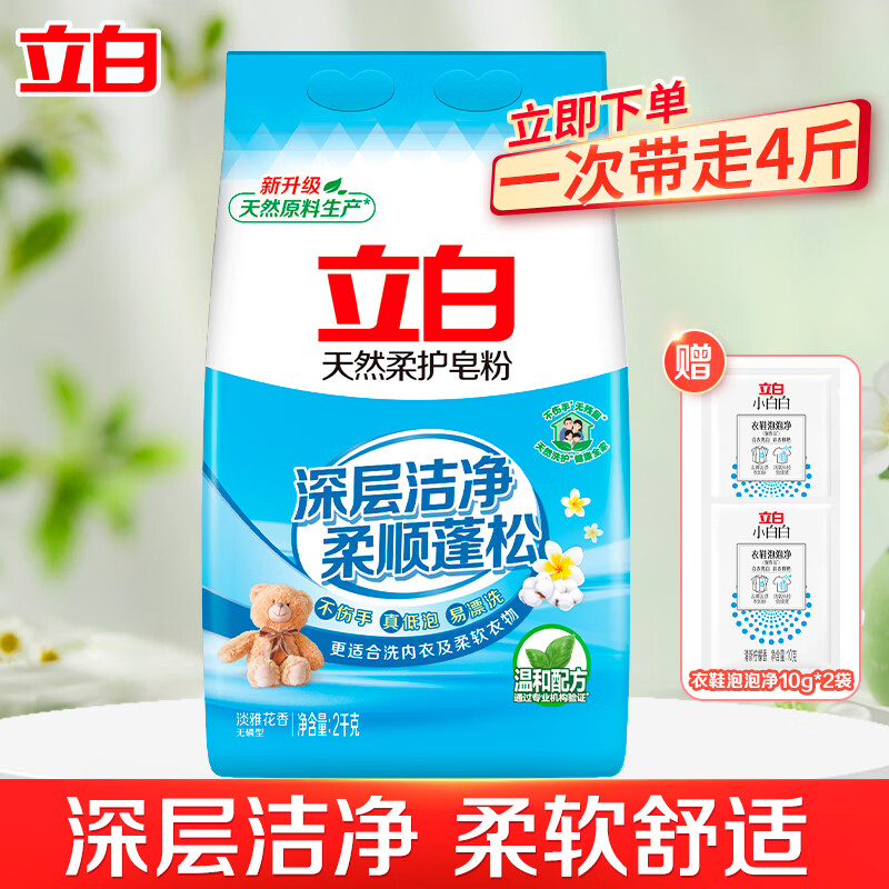 立白天然柔护皂粉儿童洗衣粉深层洁净香皂粉宝宝贴身衣服清洗 【天然皂粉4斤】2000克*1袋