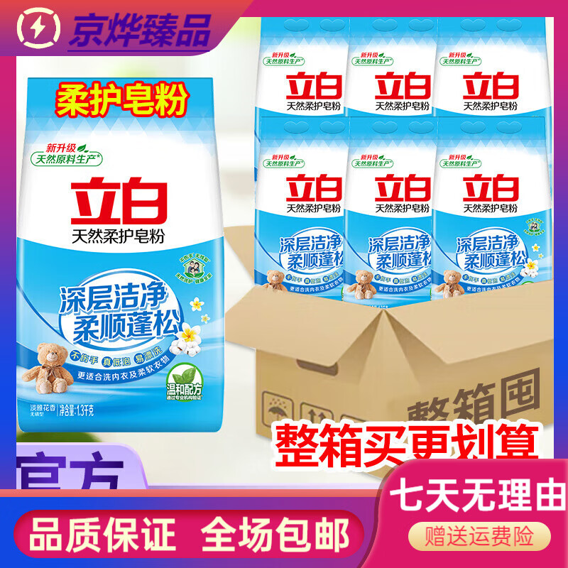 立白天然香皂粉柔护皂粉洗衣粉柔软蓬松温和护衣不伤手去污不发黄 天然柔护皂粉1.3kgx6袋