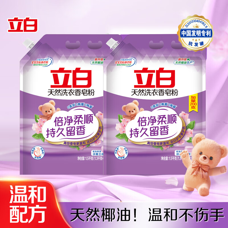立白香皂粉洗衣粉天然椰油淡雅兰花香柔顺护衣倍净护色不发黄 立白天然香皂粉1.5kg*2袋