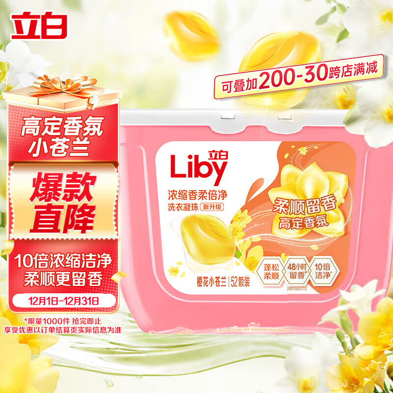 立白洗衣凝珠 小苍兰香氛52颗 单腔 持久留香 浓缩洗衣液 速溶快洗