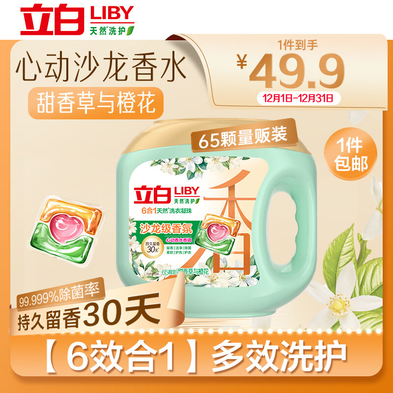 立白沙龙香氛洗衣凝珠65颗 三腔 甜香草与橙花 留香30天 浓缩洗衣液