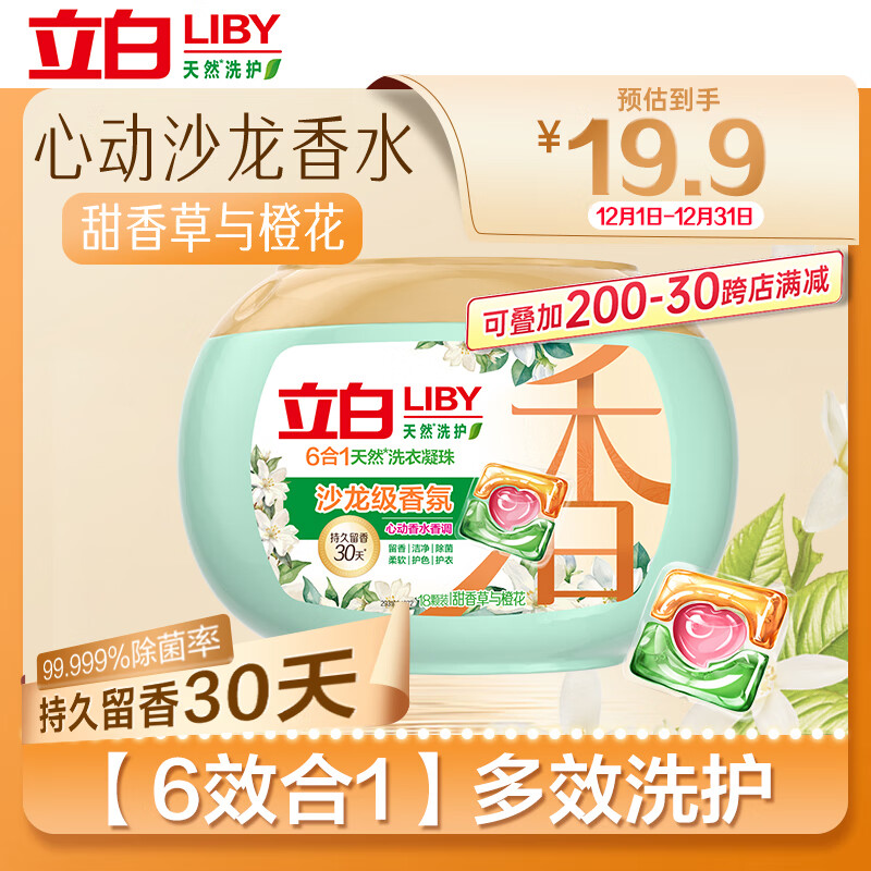 立白沙龙香氛洗衣凝珠 甜香草与橙花 18颗 三腔 留香30天 浓缩洗衣液