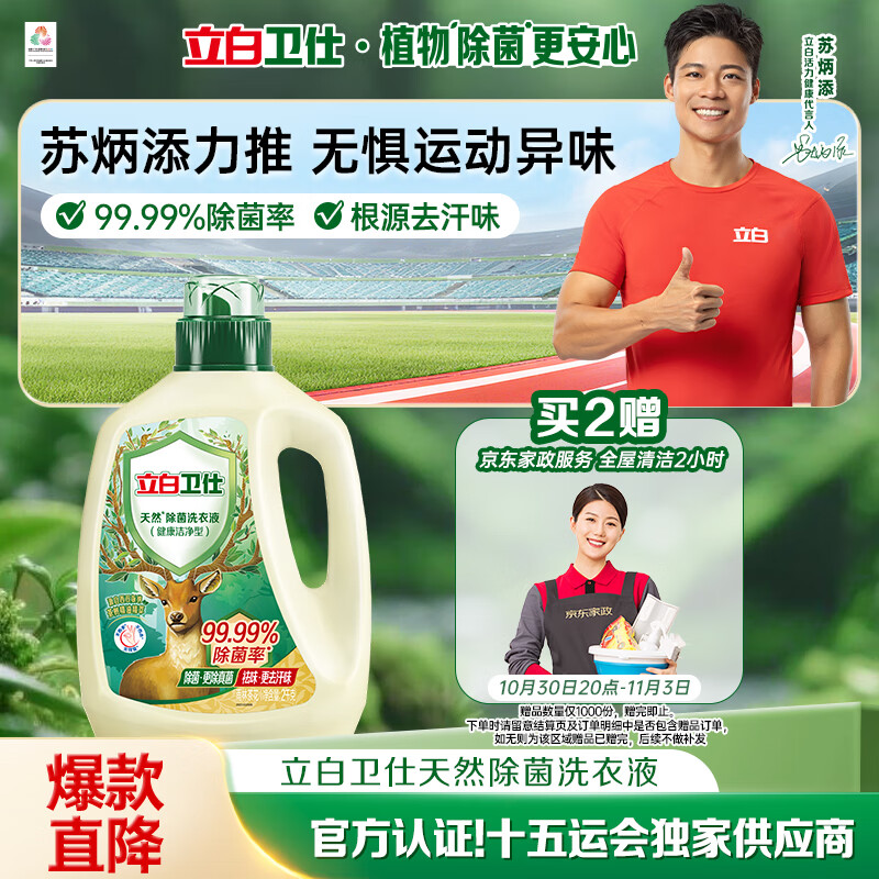 立白天然茶籽洗衣液 2斤 手洗机洗 除菌除螨抑菌 祛味去渍 儿童适用