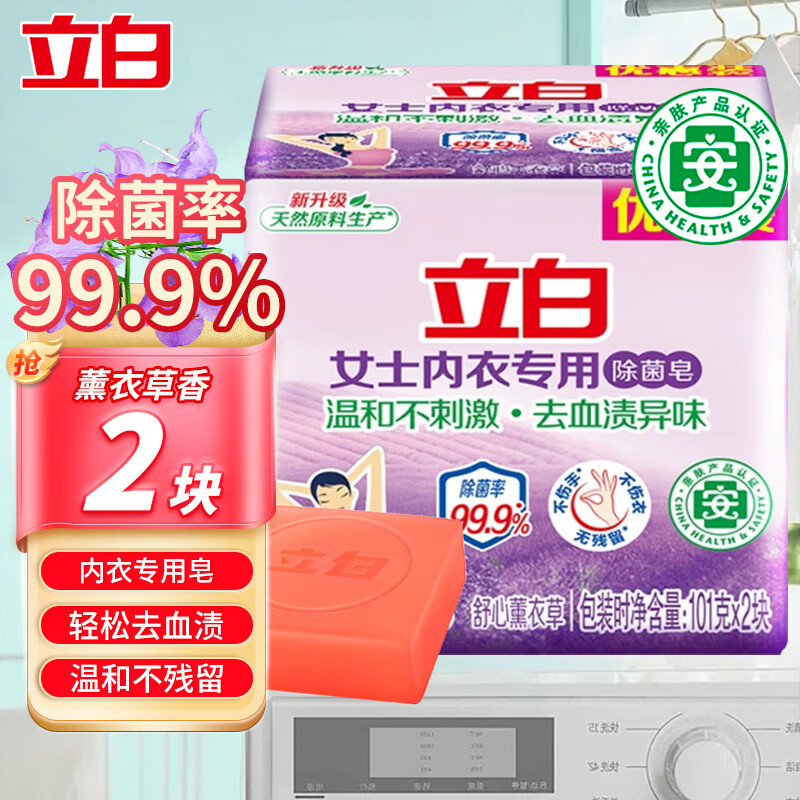立白内衣皂除菌率99%女士内衣专用洗衣皂洗内裤专用皂高效去血渍肥皂 除菌内衣皂2块(101g*2/包*1包)