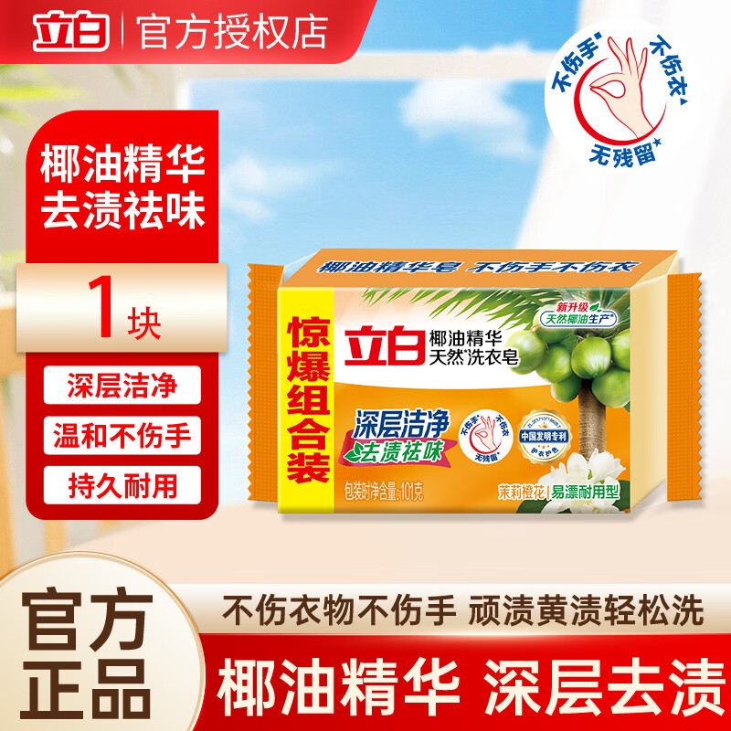 立白椰油精华洗衣皂透明皂家庭装实惠大块洗衣服肥皂耐用不伤手 立白椰油皂101g*1