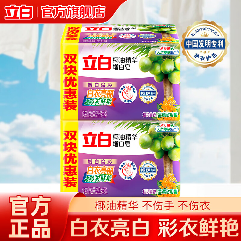 立白椰油精华洗衣皂洗袜子去渍易漂无磷洗袜子去渍闪亮衣物 205g椰油皂2块/组*2组