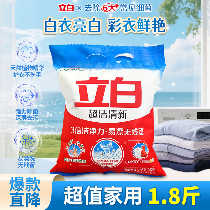 立白超洁清新洗衣液强力去污除菌去渍易漂无残留洁净手洗机洗大袋家用 【1.8斤】超洁清新洗衣粉 900g*1袋
