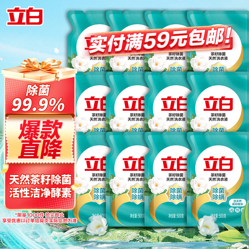 立白天然茶籽洗衣液12斤 除菌除螨抑菌 手洗机洗祛味去渍含补充装