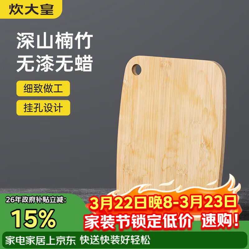 好管家菜板切菜板抗菌防霉家用砧板厨房案板实木占板刀板竹水果板 抗菌防霉楠竹33*23*1.8cm
