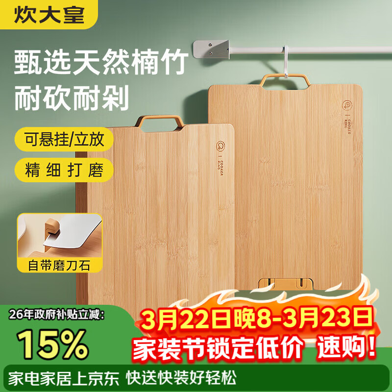 炊大皇菜板天然竹菜板旋转可立砧板自带磨刀石竹菜板45*32*2.2cm