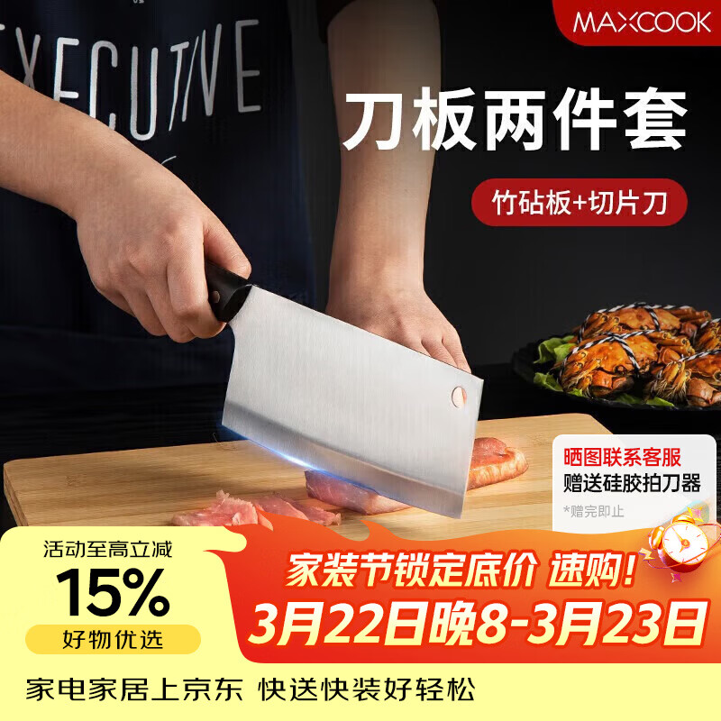 美厨(MAXCOOK)砧板菜板案板 竹砧板菜刀切片刀水果刀二件套MCD4475