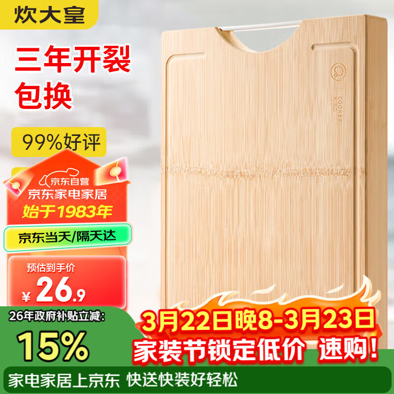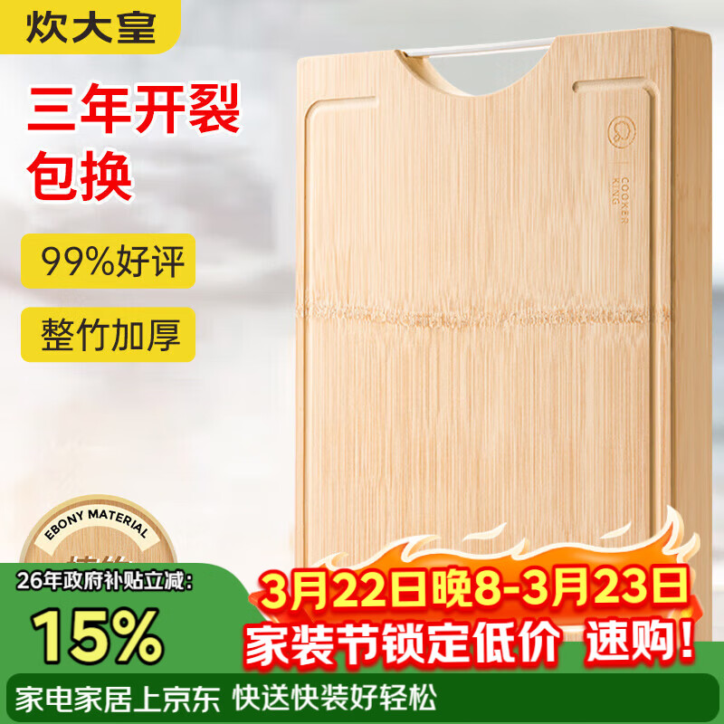 炊大皇天然整竹菜板砧板加厚非拼接防滑切菜板38*26cm