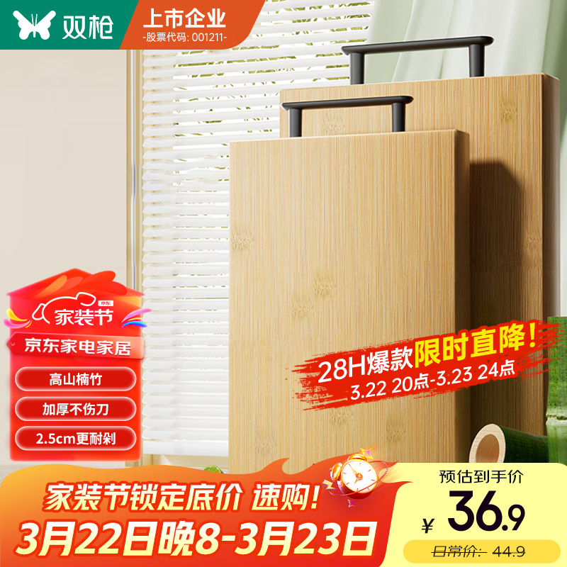 双枪菜板 切菜砧案板家用食品级高山楠竹加厚菜板刀板粘板40*30*2.5cm