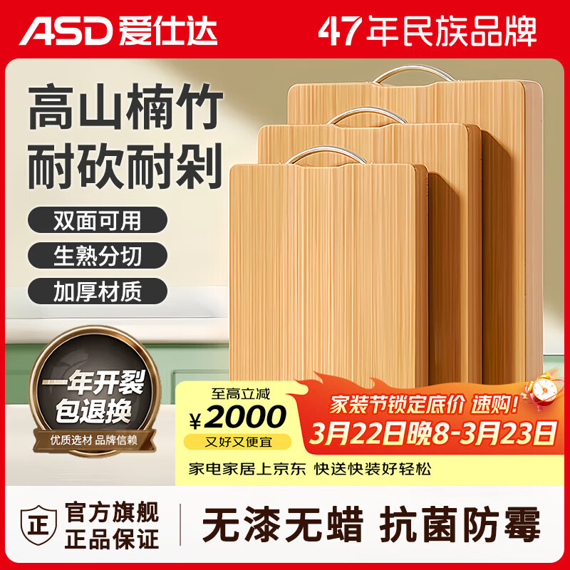 爱仕达切菜板抗菌防霉竹粘板家用砧板厨房案板宿舍实心小占板
