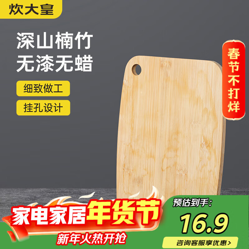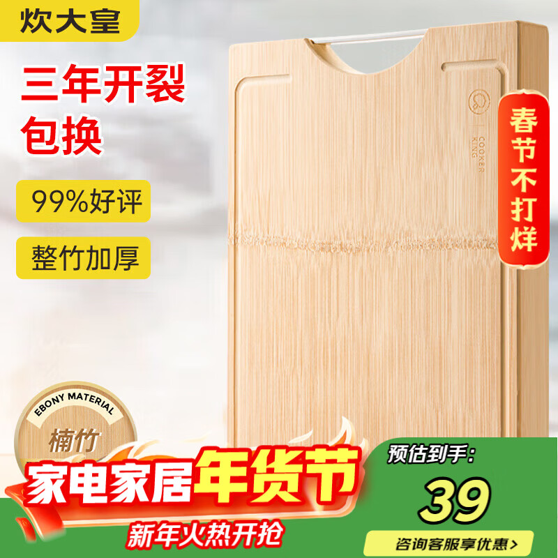炊大皇天然整竹菜板砧板加厚非拼接防滑切菜板38*26cm