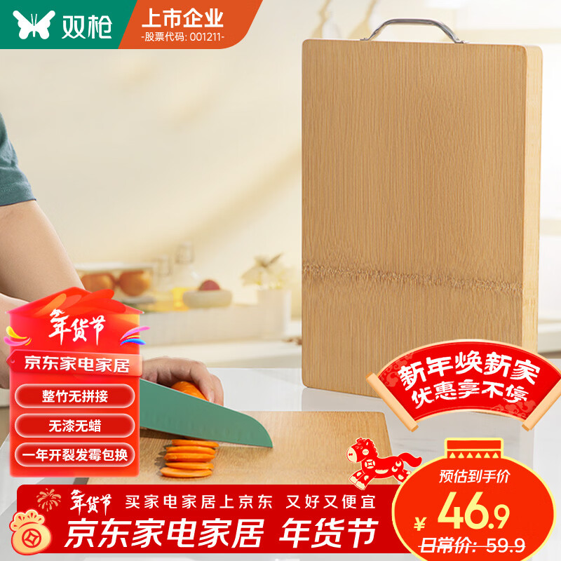 双枪(Suncha)天然整竹砧板加大号切菜板无漆无蜡面板案板50*33cm