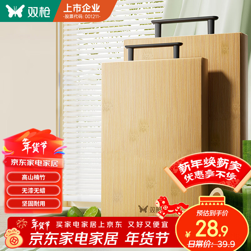 双枪菜板 切菜砧案板家用食品级高山楠竹加厚菜板刀板粘板40*30*2.5cm