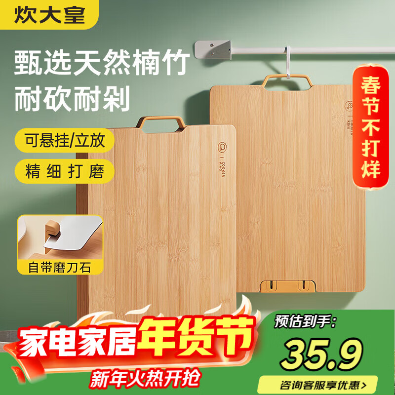 好管家菜板切菜板抗菌防霉家用砧板厨房案板实木占板刀板竹水果板 抗菌防霉楠竹45*32*1.8cm