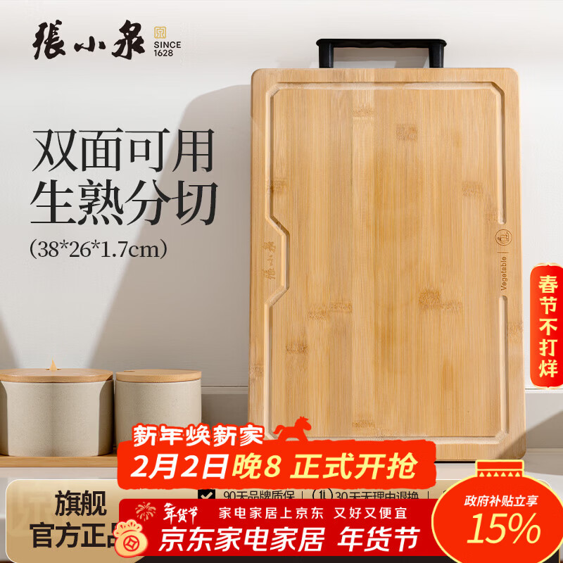 双枪(Suncha)整竹砧板切菜板实竹案板加大加厚防霉家用面板38*26*1.8