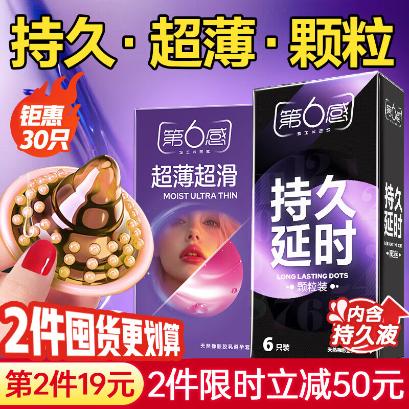 第六感液态延时避孕套 持久大颗粒含赠30只组合 超薄安全套套成人情趣