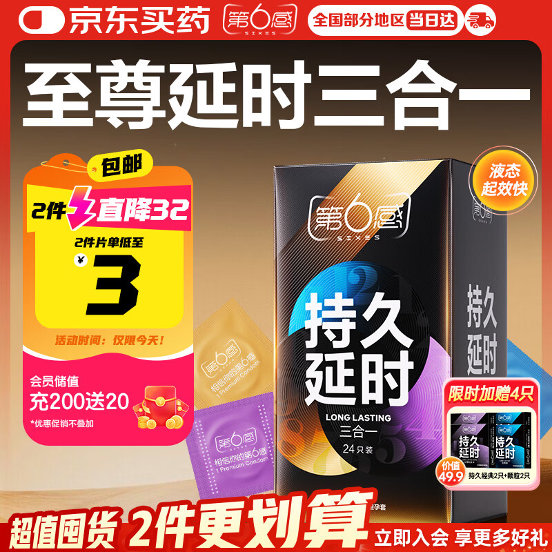第六感持久避孕套 液态延时尊享三合一24只男专用持久安全套超薄用