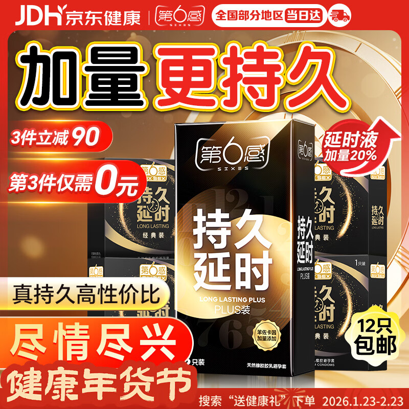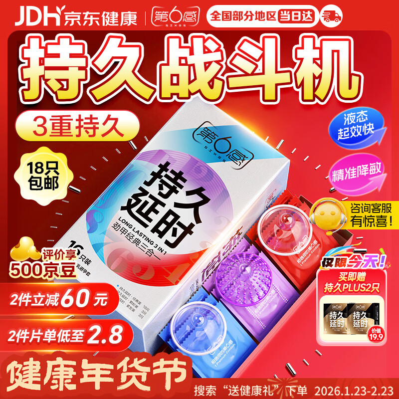 第六感避孕套 持久劲甲延时三合一18只含赠 安全套男专用持久防早泄敏感