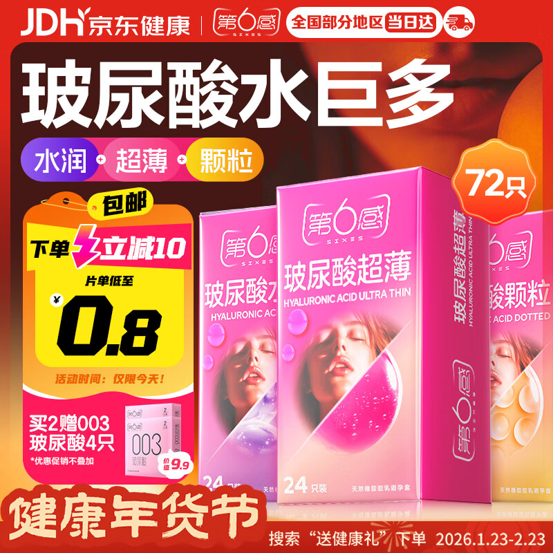 第六感超薄避孕套 玻尿酸72只量贩囤货 颗粒安全套套003男女用成人情趣