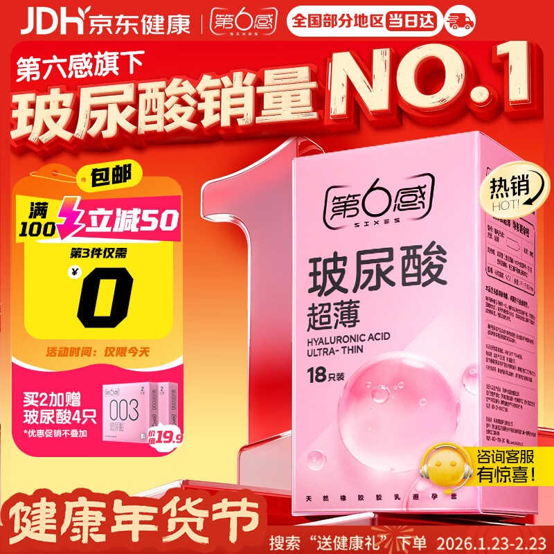 第六感 避孕套003玻尿酸18只装 超薄光面水润男用安全套子 计生 女专用