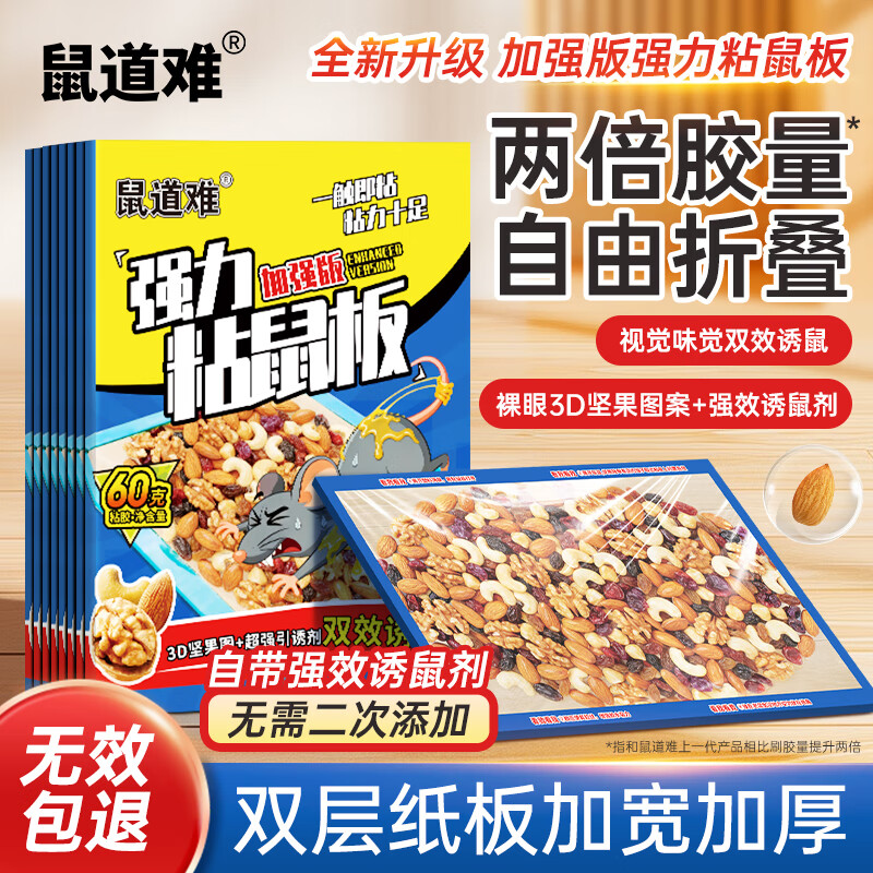 鼠道难粘鼠板老鼠贴捕鼠家用粘大老鼠神器灭补鼠超强力大号加厚粘板10片