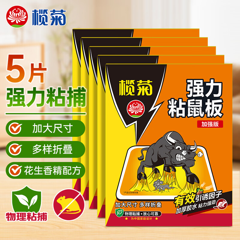 榄菊超强力粘鼠板5片老鼠贴抓老鼠捕鼠胶贴 加厚加黏